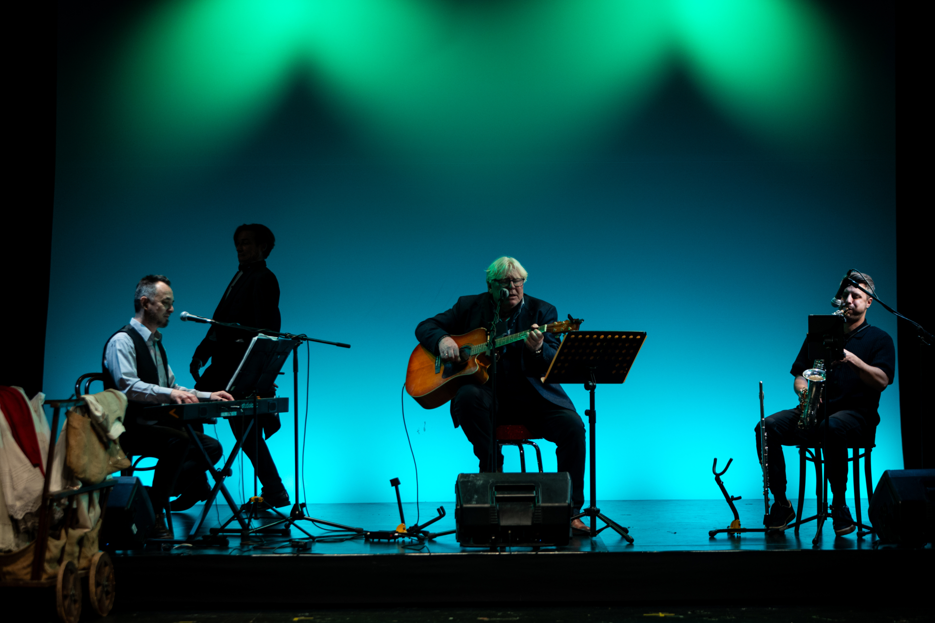 Szarka Gyula (gitár, ének), Jelasity Péter (szaxofon, furulya), Nagy Szabolcs (billentyűs hangszerek, vokál), Varjú Attila (ütőhangszerek)